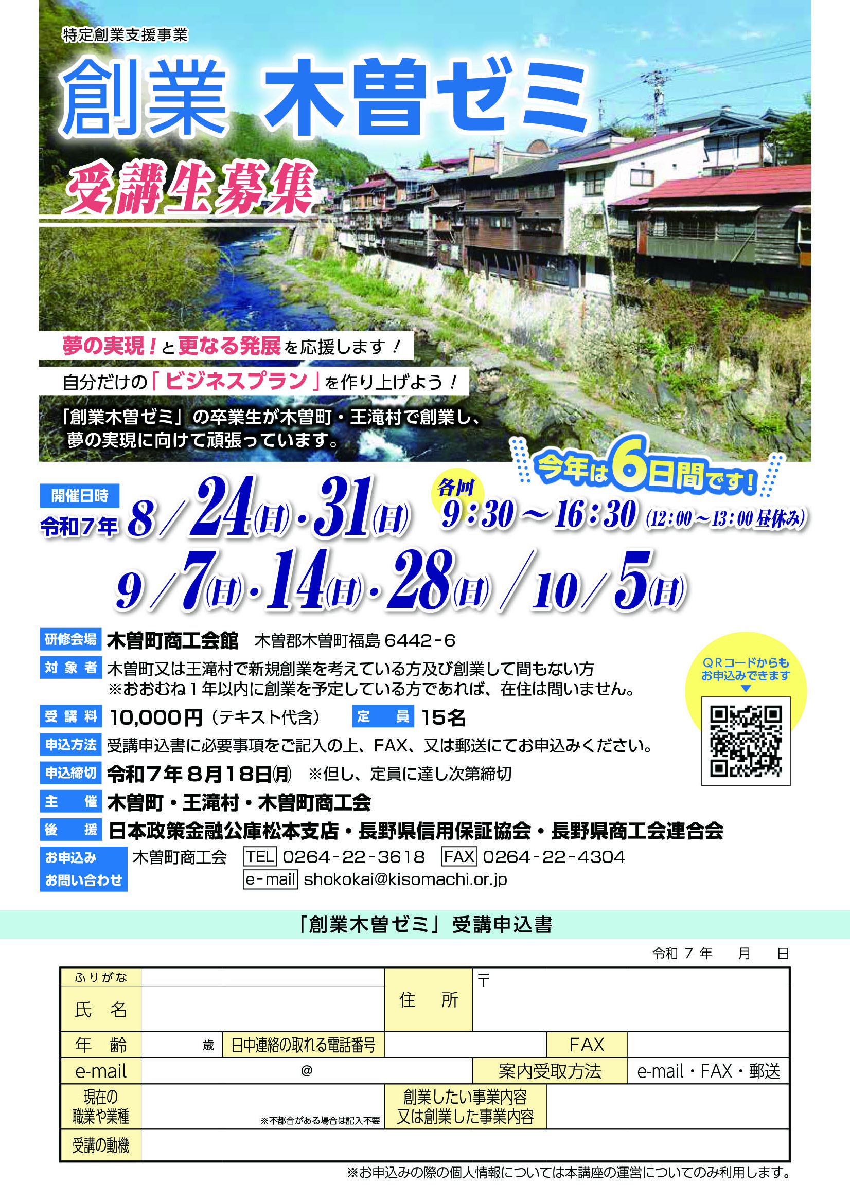 木曽町・王滝村の支援を受けて木曽町商工会が実施する講座です。