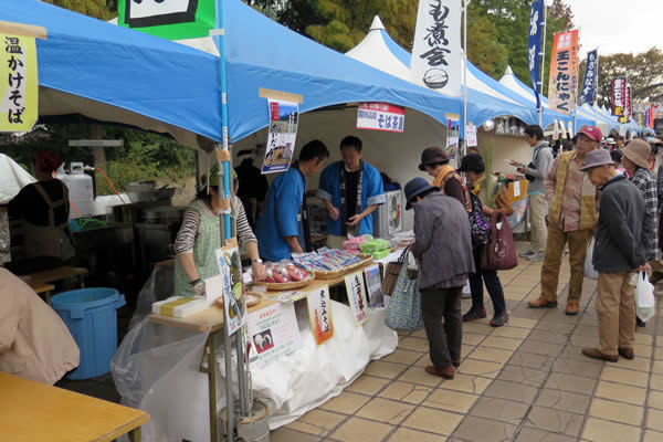 残念ながら雨天模様の下での開催となりましたが、収穫されたばかりの新そばを味わおうと各地から大勢の観光客の方々にご来場いただくことができました。