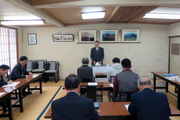 | 議 題 |   1,会員の加入・脱退について 2,収支予算更正について 3,支部交付金、及び各部会新年度予算について 4,規程の一部改正について 5, 平成30年度 通常総会、支部総会、理事会の開催日程について 6,木曽町とくとく振興券事業について 7,任期満了に伴う役員改選について 8,その他  |