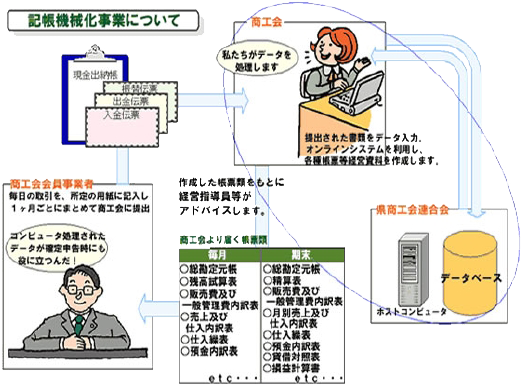 現在、商工会が行う記帳機械化事業の標準システムとして、全国31県で導入され、65,000事業所以上の経理データが商工会において処理されています。